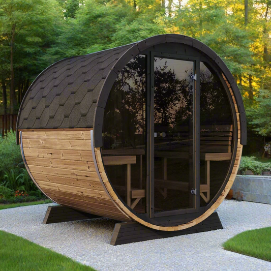 SaunaLife ERGO Series E7W | 4 Person Outdoor Barrel Sauna with Window